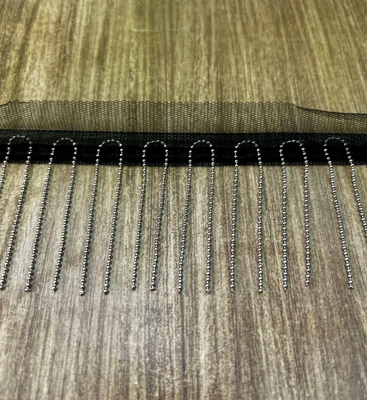 سلسلة حمصة وكريستال فضي على تول اسود عرض 8 سم